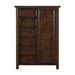 The transitional framing of the Logandale Collection allows for versatile placement within a number of classic bedroom decors, making a perfect choice for your home. A brown finish is utilized over mango veneer for subtle highlighting of its distinct grain. Dark finished metal knob and pull hardware front each drawer of the wardrobe chest, creating a complementing accent to the collection. The unit has a sliding door that reveals both drawer and shelf storage. 46 x 22.5 x 66H