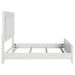 Refresh the look and feel of your bedroom with the inviting character of a modern upholstered bed. The bed features a wood frame in a distressed white finish that highlights its grain details. The headboard is a squared design complete with a padded panel upholstered in white for a monochromatic effect that's clean and contemporary. A low footboard completes the look and creates an open, inviting profile for your bedroom.