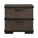 Modern lines pair with texture and hue to create the dynamic look of the Acworth Collection. The two-tone brown-ish gray and black finish over oak veneer of the collection lends to the modern-industrial inspired aesthetic that comprises the collection’s design. Black bar hardware fronts the drawers of the drawers of the nightstand, their minimalistic lines providing bold accent to the piece.