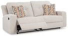 This reclining sofa invites you to a luxuriously soft lounging experience. The chic hue fits right in with contemporary color palettes. A tufted back keeps the look right on trend. Balancing style and function, its pull tab reclining effortlessly takes you to relaxation mode.