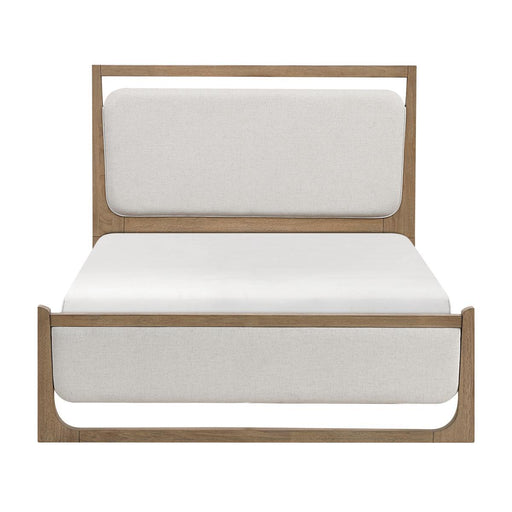 Homelegance (Fremont Warehouse)Product DescriptionElevate your bedroom's ambiance and style with this modern bed frame, featuring a striking combination of light brown wood and t...