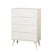 LENNART II White Chest, 34"W X 17"D X 48"H, 125.4lbs. For a quick modern update to your home, this collection will add that trendy mid-century appeal. Coordinating case goods such as this chest boast slim flared legs and recessed handle drawer pulls. Features: Mid-Century Modern Style Round Tapered Legs Recessed Drawer Handles Solid Wood, Wood Veneer, Others White
