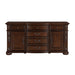 Rich in the aesthetic of Old-World tradition, the design of the Adelina Collection is the culmination of classic accenting that creates an elegant presentation for your dining room. The intricate scroll detail of the buffet/server provides eye-catching detail. The acanthus leaf carvings and bun feet that support buffet/server provide additional traditional accenting. The serpentine front of the buffet/server features framed drawer and door storage with fixed-pull traditional hardware. Furthering the timeless aesthetic that permeates the collection, is the cherry finish, with gold tipping, over birch veneer and pine solids. 64.5 x 19.5 x 32.5H