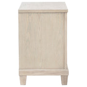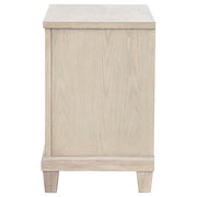 Effortlessly elegant and thoughtfully designed, this two-drawer nightstand brings refined charm to the bedside. Framed with stepped trim and finished in breezy washed oak, it offers a light, coastal-inspired presence. Polished nickel ring pulls add a glint of elegance, while built-in cable access discreetly manages devices tucked inside the upper drawer. Crafted from poplar, oak veneer, and engineered wood, it marries timeless style with everyday convenience. Key Features: • Two-drawer nightstand with stepped trim and clean lines for soft, classic structure • Washed oak finish brings coastal-inspired warmth and visible wood grain • Upper drawer includes cable access for discreet charging and device storage • Polished nickel ring pulls add a refined touch to the timeless silhouette • Crafted from poplar, engineered wood, and oak veneer for everyday durability • Perfect as a bedside table with a blend of tradition, beauty, and hidden utility