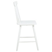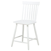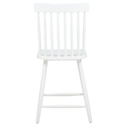 Classic and casual with a fresh farmhouse flair, this Windsor-style counter height chair features a high spindle back and gently contoured seat for timeless comfort. The clean silhouette is crafted from solid rubberwood with a rich wood veneer that enhances its natural grain. Angled legs with double stretchers offer reliable support and charm. Ideal for kitchen islands, pub tables, or counter-height dining spaces. Key Features: • Windsor-style counter height chair in light ash finish brings casual elegance to kitchen counters • High spindle back and curved seat on this counter chair support relaxed, upright dining comfort • Angled leg design adds stability while enhancing its signature farmhouse-style silhouette • Footrest stretchers provide extra comfort and structural integrity for daily use • Crafted from solid rubberwood and topped with a warm-toned wood veneer for natural appeal • Clean, timeless lines and elevated height work perfectly with counter-height tables or bars