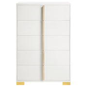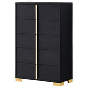 Gleaming gold accents create a sense of richness and elegance for a contemporary bedroom set. In a black finish that's crisp and timeless, the set ...