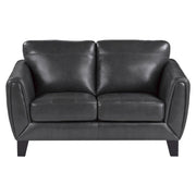 The subtle retro look of the Spivey Collection will pair with modern aesthetic of your home’s décor, creating a classically cool look that is sure to turn heads. The streamlined profile of the love seat is covered in an dark gray hued top grain leather. Defining detail comes in the form of the arm’s contour stitching and the cushioned wrap of the love seat’s arms.