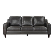 The tailored lines of the Aldrich Collection harken to the retro-inspired refinement of mid-century design, their understated elegance a perfect pairing for your living room. Gray genuine leather covers the frame of the sofa, where the body touches, with faux leather match everywhere else. The modern profile of the collection is supported by conical legs, while track arms define the timeless look.