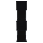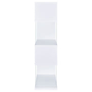 The asymmetrical zig-zag design of this contemporary bookcase creates a focal point in any room. Five open shelves in a light grey driftwood finish stack elegantly, supported by clear glass side panels that lend a modern flair to this furniture piece. Perfect for home offices, living rooms and much more, showcase anything from a book collection, decor, and other favorite items for all to see. With a flush base, this open bookcase unit rests sturdily and securely on the floor. Clean lines and a wonderful jagged design offer up style, functionality, and a stunning display. Key Features: • Zigzag bookcase design with alternating grey driftwood shelves • Clear glass side panels lend support and create a floating effect • Four open shelves offer space for books, décor, or personal items • Flush base rests flat on floors for added security and balance • Constructed from engineered wood, laminate veneer, and tempered glass • Modern sculptural format complements minimalist and contemporary rooms