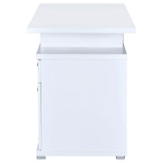 Maximize efficiency in any workspace with this sleek office desk. Designed with a reversible configuration, the attached storage can be placed on either side to suit your layout. A spacious desktop provides room for projects, while a storage drawer and a file cabinet keep essentials neatly organized. The file drawer accommodates both letter and legal-sized documents for versatile use. Built with engineered wood and laminate veneer, this desk blends durability with modern style for home or office settings._x005F_x000D_ Key Features: • Cappuccino finish office desk with sleek modern design and compact footprint • Reversible configuration allows file and drawer unit on either desk side • Includes one storage drawer and one file cabinet for practical organization • File drawer accommodates both letter and legal size document storage needs • Built with engineered wood and laminate veneer for durable everyday use • Silver finish hardware accents provide a clean contemporary design detail