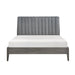 Designed to create a stylistically versatile bed option, the Dade Collection is a subtle modern addition to your bedroom’s trend-forward look. Gray velvet fabric upholstery covers the vertical channel-tufted design of the Eastern King headboard, providing a neutral complement to your decorative bedding. The wood frame of the bed’s footboard and rails features a gray finish. The platform construction of the bed doesn’t require a box spring. 79 x 91 x 48H