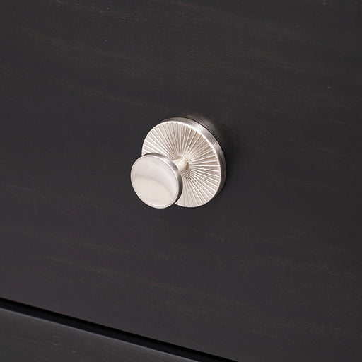 Mid-Century Modern Black Solid Wood, Acacia Veneer, Engineered Wood Silver-Capped Legs Silver Round Knobs Ball-Bearing Glides French & English...