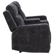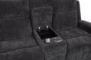 Unwind in perfect sync with this chenille power reclining loveseat, crafted for shared comfort and convenience. Dual recliners offer smooth, quiet motion at your touch, while a center console adds thoughtful storage with a lift-top compartment and two removable stainless steel cup holders. Wrapped in soft, textured chenille and reinforced with a durable metal frame, this piece blends everyday luxury with functional ease. Key Features: • Power loveseat with smooth dual recliners offers effortless, personalized comfort • Ivory chenille upholstery adds softness and a subtle textured visual appeal • Center console features lift-top storage for remotes, books, or other items • Includes two removable stainless steel cup holders for clean and easy use • Durable metal framing supports long-term strength and daily reliability • Polyester chenille fabric balances plush comfort with easy-care maintenance