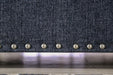 SONORA Loveseat, Dark Navy, 71"L X 44"W X 40"H, 100lbs. Sit back and enjoy the tried-and-true classic appearance of this loveseat in your living. Plush T-seat cushions and loose pillow backs feature smooth curves that create a truly inviting appeal that enhances this loveseat, without detracting from the comfort it provides: the soft fabric and spacious wide armrests. Each piece is supported by tapered block legs visually obscured by the bright nickel polished nailheads that line the bottom edge of the frame. This loveseat mingles uniquely old fashioned themes with more modern luxurious comforts.