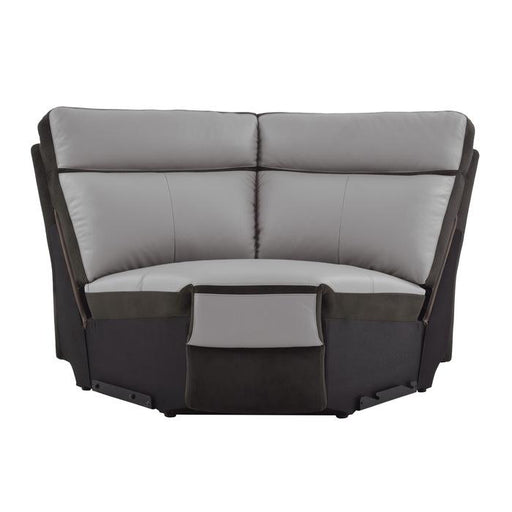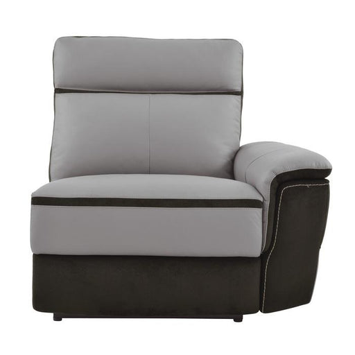 Homelegance (Fremont Warehouse)Laertes Collection by Homelegance Furniture Taupe Gray top grain leather Contrasting with a darker tone fabric Power reclining mechanism 64.5 x...