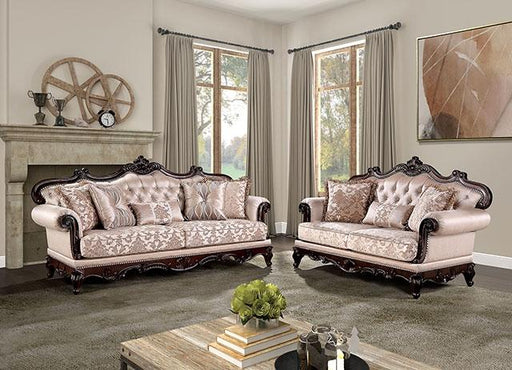 FOA WestChair Product Dimension: 48"L X 37"W X 41"H With a mix of patterns and textures, this smart seating group has attractive carved trim and extra desi...