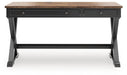 - Top with butcher block veneer pattern in rich brown wood-tone finish