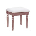 TRACY Rose Gold Vanity w/ Stool, 17 1/4"L X 14 1/2"W X 17"H, 160.6lbs. Shimmering mirror inserts and an extravagant tri-fold mirror create a dramatic statement that screams glam! The paired upholstered stool and many drawers of this contemporary style vanity set create a comfortably functional place to sit and prep for the day. Features: Contemporary Style Storage Drawers 3mm Mirror Inserts 3-Sided Mirror Solid Wood, Wood Veneer, Others Rose Gold